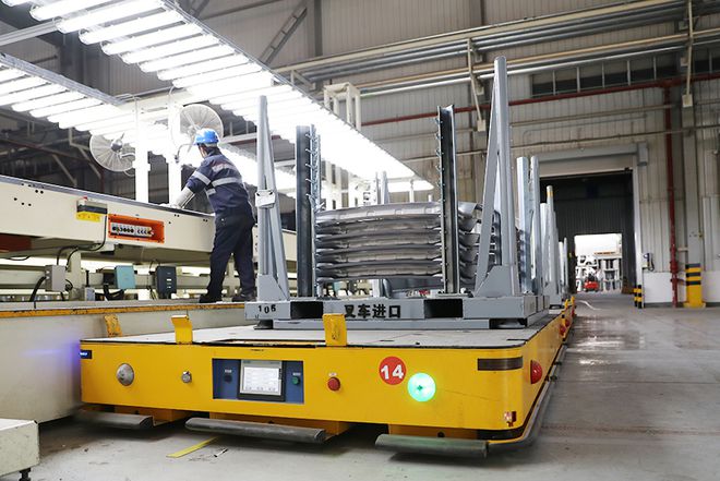 鋼板完成所有沖壓工序之后,都會經(jīng)過人工檢查,如果有問題會交到返修部門。配合檢測的還有平行光檢測室,檢測頻率是50件/次,檢測合格的產(chǎn)品會由AGV小車運往倉庫。這種小車在其他車間同樣能夠見到,是個智能的自動運輸設(shè)備。
