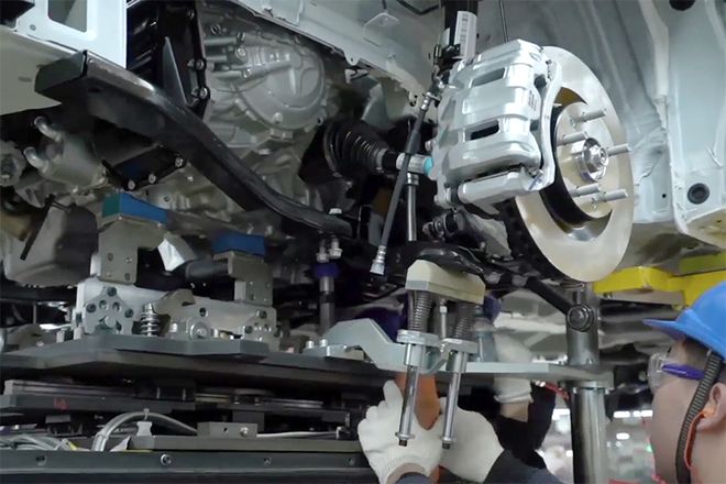 扭矩控制系統(tǒng)也是總裝車間里處于國內(nèi)領(lǐng)先水平的科技裝備,系統(tǒng)通過154套高精度工具保證442個關(guān)鍵擰緊點的準(zhǔn)確性和可追溯性。在生產(chǎn)過程中,一旦有某個工位扭力未達到標(biāo)準(zhǔn),生產(chǎn)線便會停下來。